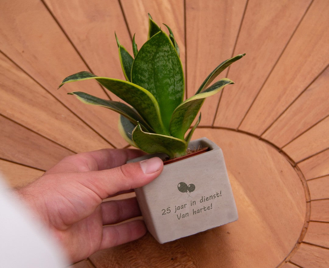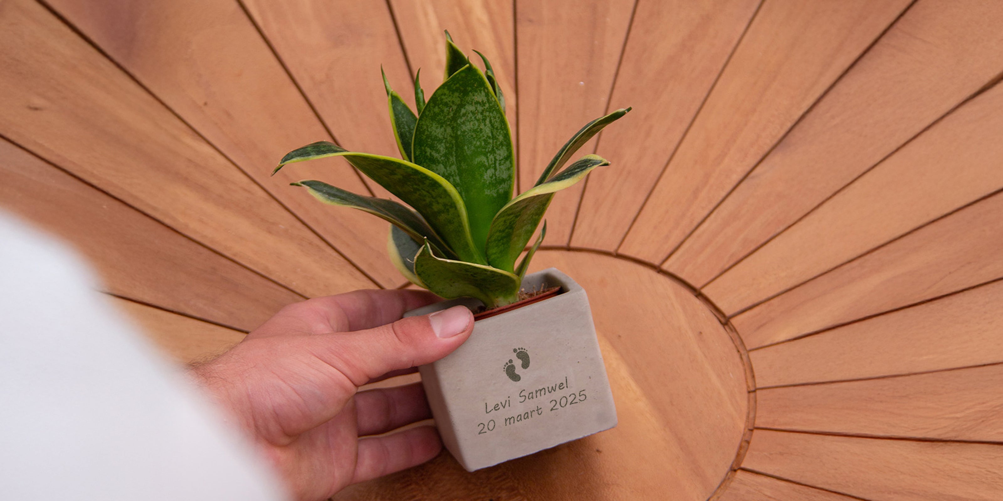 Elke pot is voorzien van een unieke tekst, speciaal afgestemd op de gelegenheid. Zo geef je altijd iets bijzonders.